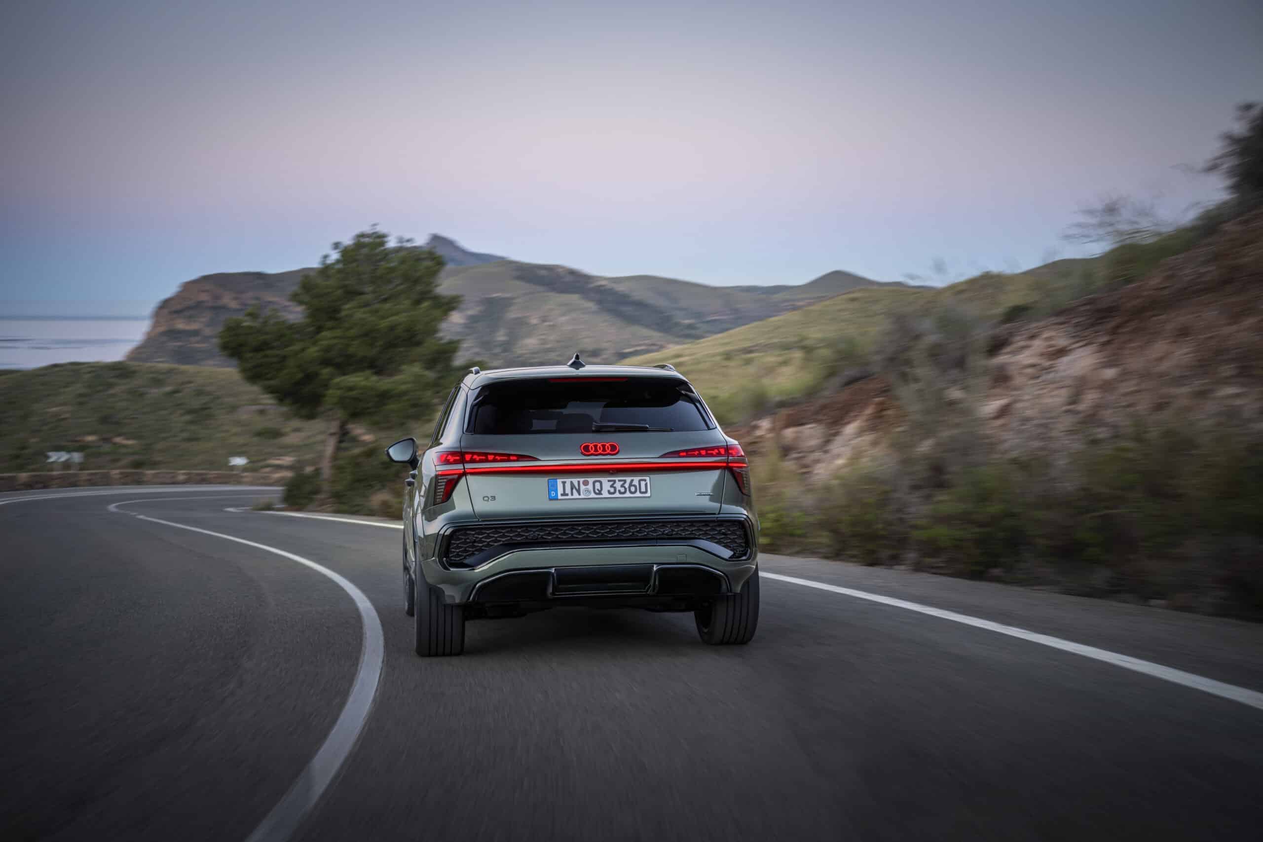 Bereits auf den ersten Blick fällt das neue Exterieur-Design auf. Mit knapp 4.5 Metern Länge wirkt der Q3 kraftvoller und gleichzeitig eleganter als sein Vorgänger. Der breite, achteckige Singleframe-Grill in Wabenstruktur, flankiert von zweigeteilten LED-Scheinwerfern, verleiht der Front eine markante Präsenz. Am Heck sorgen ein durchgehendes Leuchtenband und optional erhältliche OLED-Rückleuchten für einen modernen und hochwertigen Auftritt.