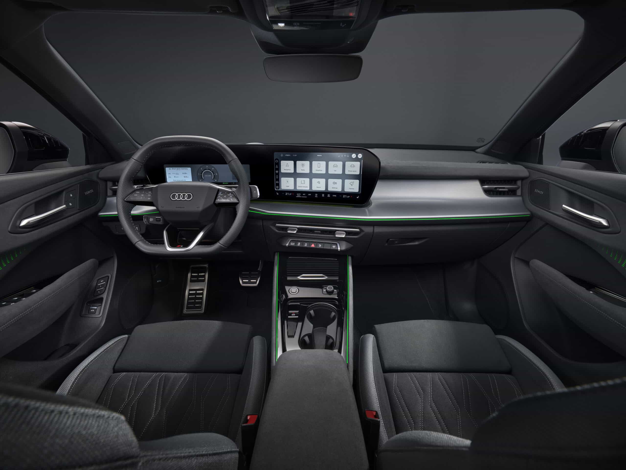Im Innenraum setzt Audi auf ein konsequent digitales Konzept. Ein zentral platzierter Touchscreen und ein digitales Kombiinstrument sind serienmässig an Bord. Optional ergänzt ein Head-up-Display das Angebot. Bedient wird vieles über das neue Multifunktionslenkrad, das intuitiv auf Eingaben reagiert. Auch das Raumangebot überzeugt: Das Kofferraumvolumen beträgt je nach Rücksitzposition zwischen 488 und 575 Litern und lässt sich durch Umklappen der Rücksitzlehnen auf bis zu 1’386 Liter erweitern – ideal für Alltag und Freizeit.